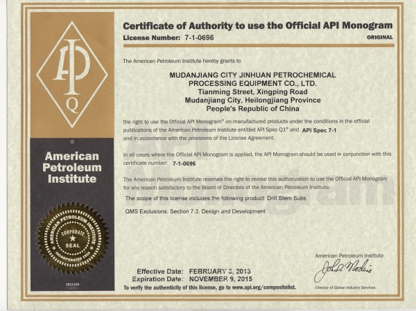 美國石油學(xué)會證書(API)