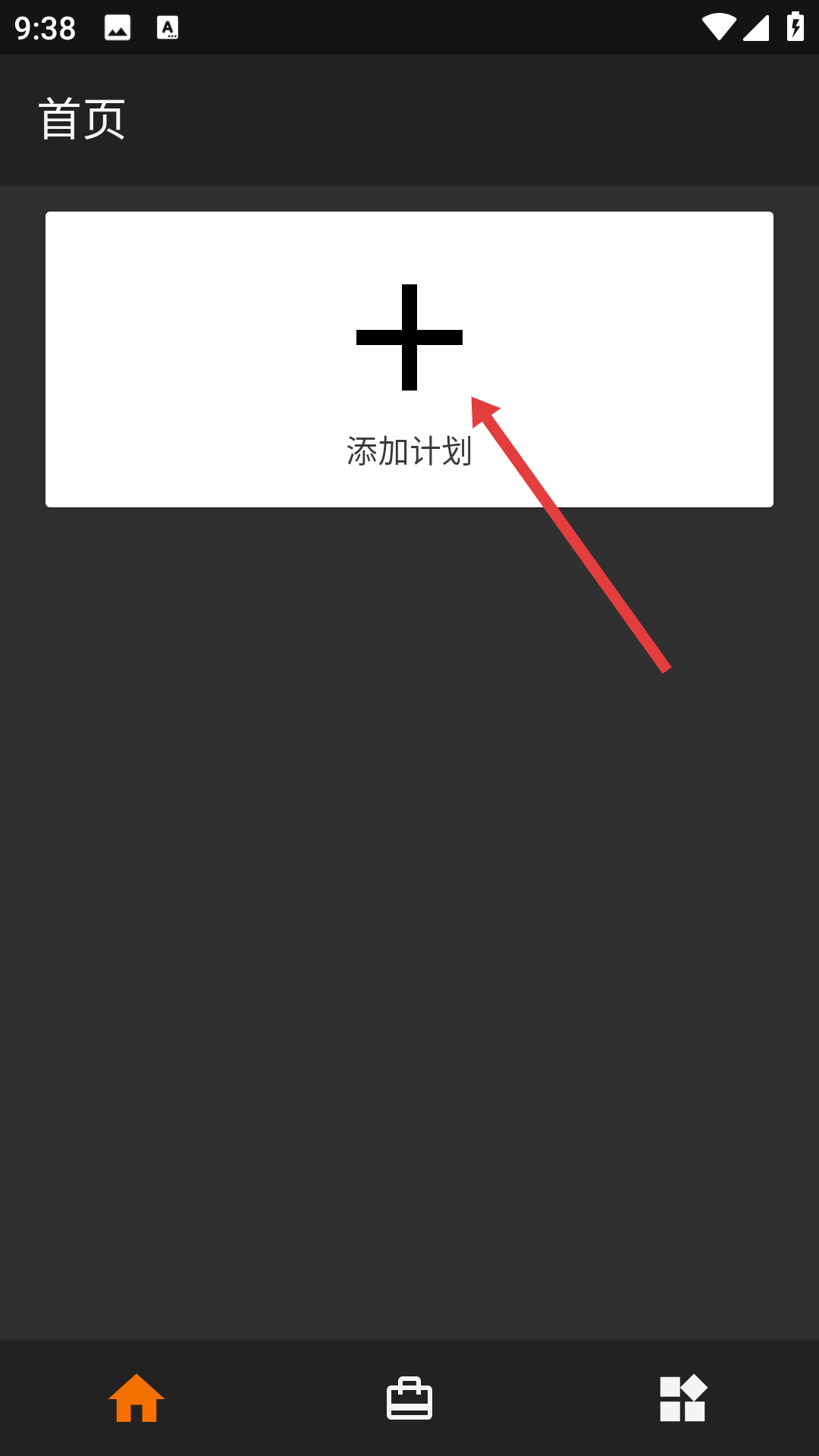 1、在首頁(yè)點(diǎn)擊帶有加號(hào)的【添加計(jì)劃】按鈕,進(jìn)入添加計(jì)劃的操作界面。