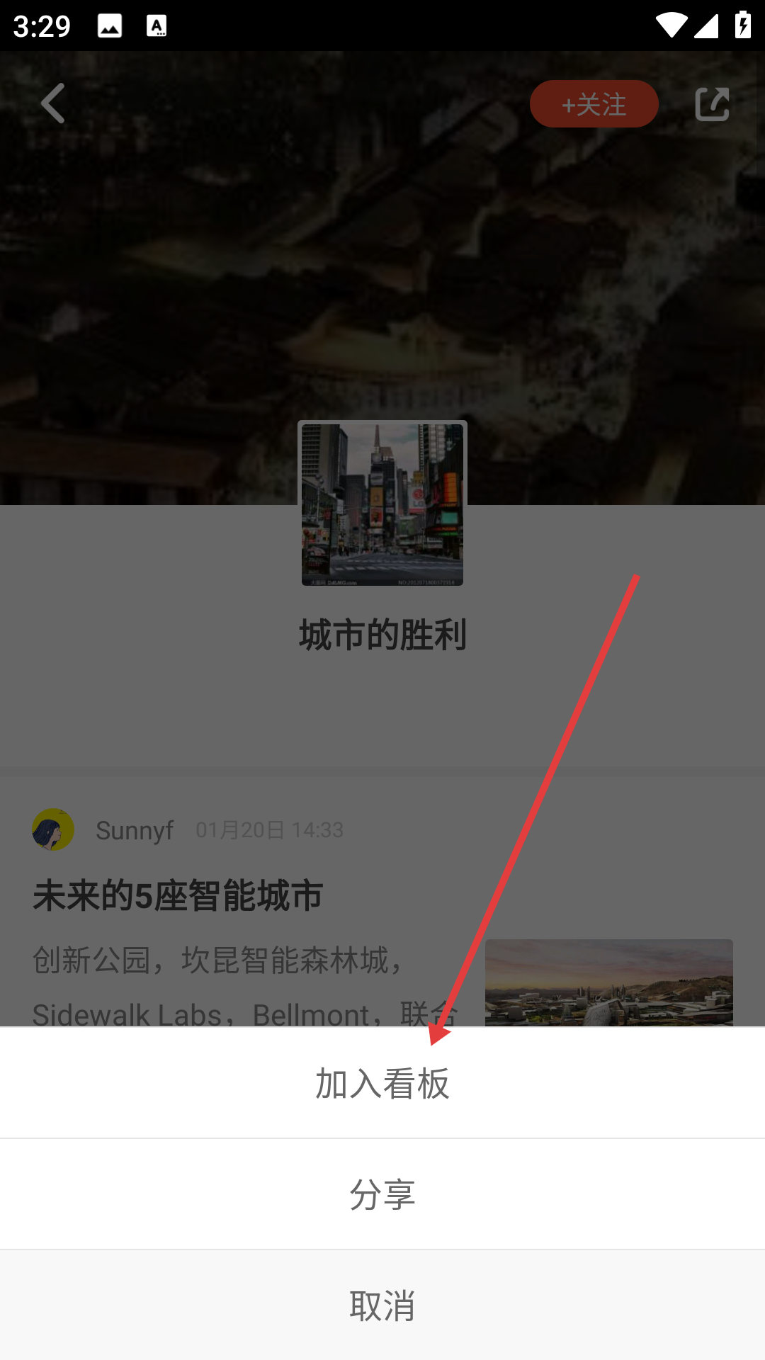 4、在彈出的菜單中,點(diǎn)擊【加入看板】選項(xiàng)。