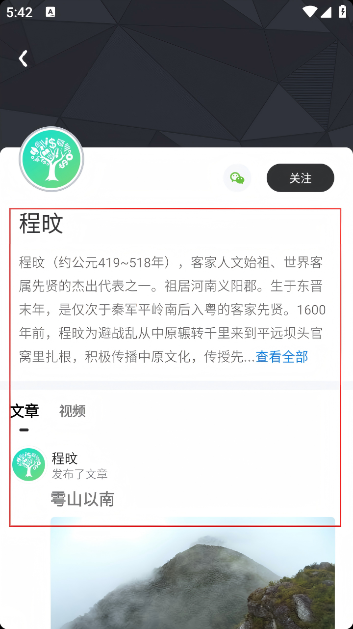 4、在程旼人物信息頁面,即可查看程旼的相關(guān)介紹,若想查看完整內(nèi)容,可點擊【查看全部】。