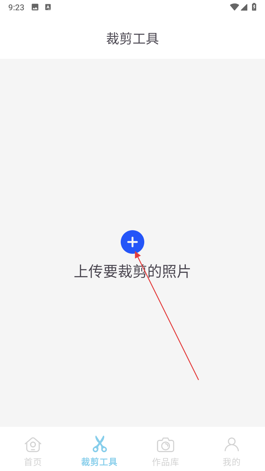 2、在裁剪工具頁(yè)面,點(diǎn)擊藍(lán)色【+】按鈕,上傳要裁剪的照片。