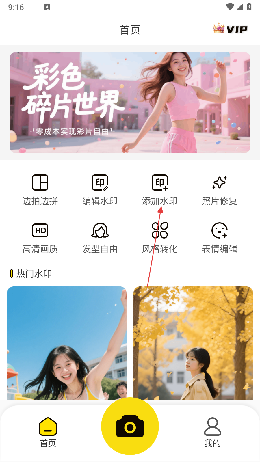 1、在首頁(yè),點(diǎn)擊【添加水印】,進(jìn)入選擇照片頁(yè)面。