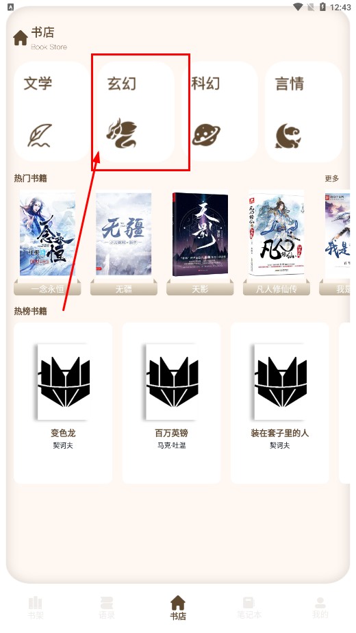 2、在書(shū)店頁(yè)面,點(diǎn)擊【玄幻-分類】,進(jìn)入玄幻類書(shū)籍列表頁(yè)。