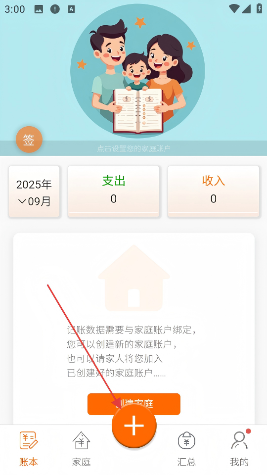 2、在應(yīng)用首頁,點擊底部橙色“+”按鈕,進(jìn)入記賬頁面。