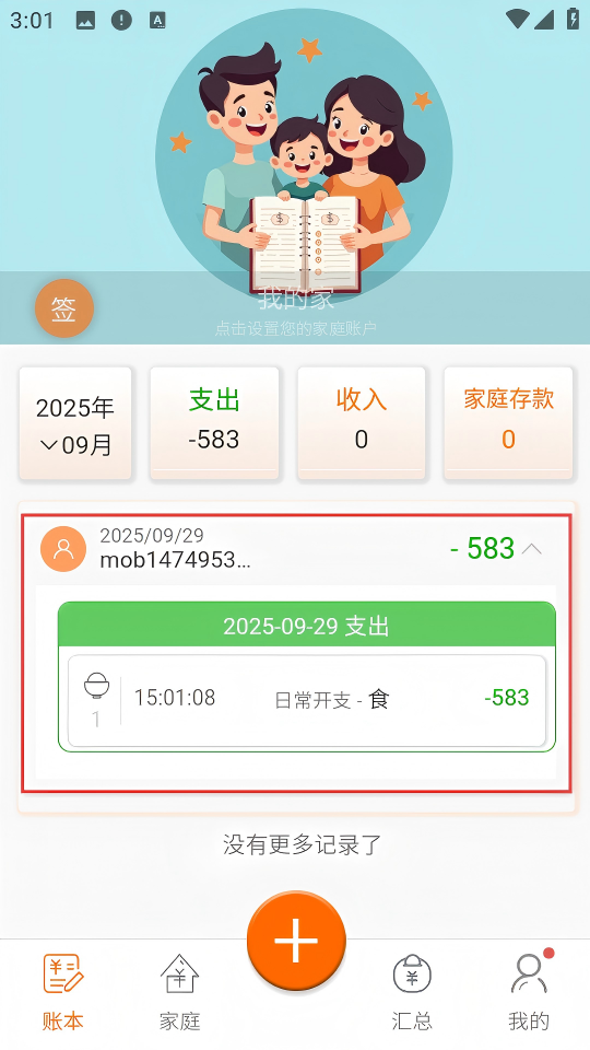 2、支出記賬細(xì)致:可詳細(xì)記錄各場景下的家庭支出,標(biāo)注支出類型與用途,留存消費明細(xì),便于后續(xù)查賬與開銷分析。