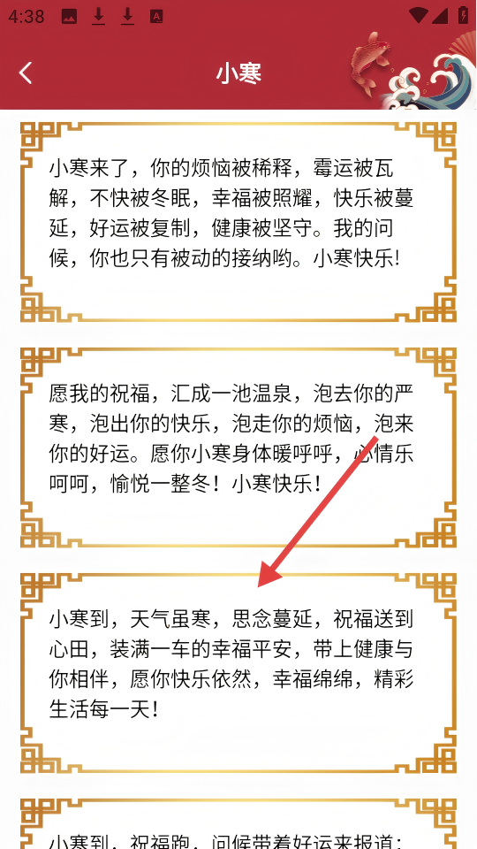 3、在小寒祝福列表中,選擇下方喜歡的祝福內(nèi)容。