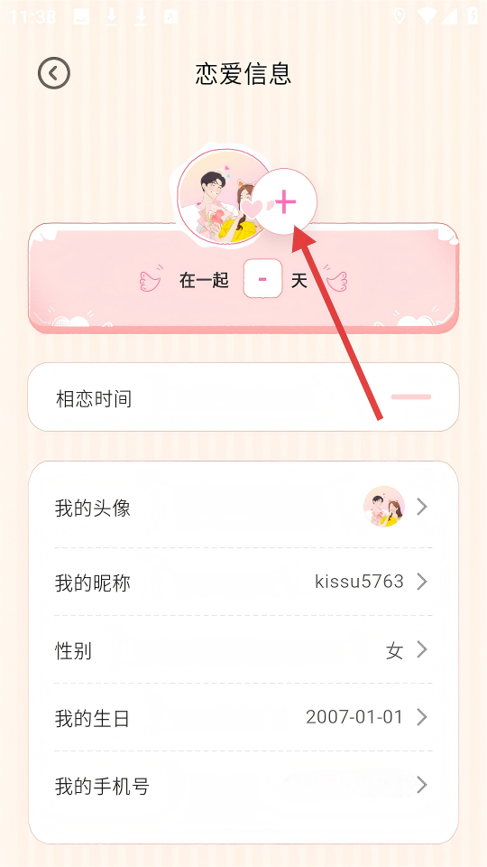 3、在【戀愛信息】頁面,點擊上方的【+】按鈕,進行相關(guān)戀愛信息設(shè)置或添加操作。