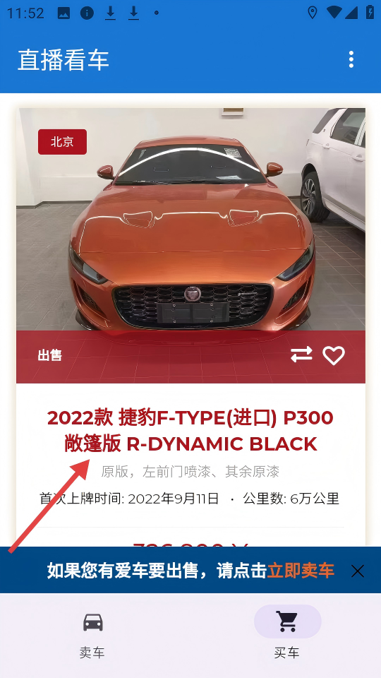2、點(diǎn)擊【2022款捷豹F-TYPE(進(jìn)口)P300敞篷版R-DYNAMICBLACK】車輛信息區(qū)域,查看車輛詳情。