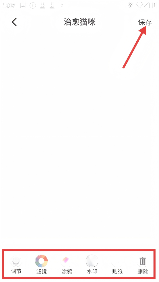 4、在照片編輯界面,使用【調(diào)節(jié)】【濾鏡】等功能編輯圖片后,點擊右上角【保存】。