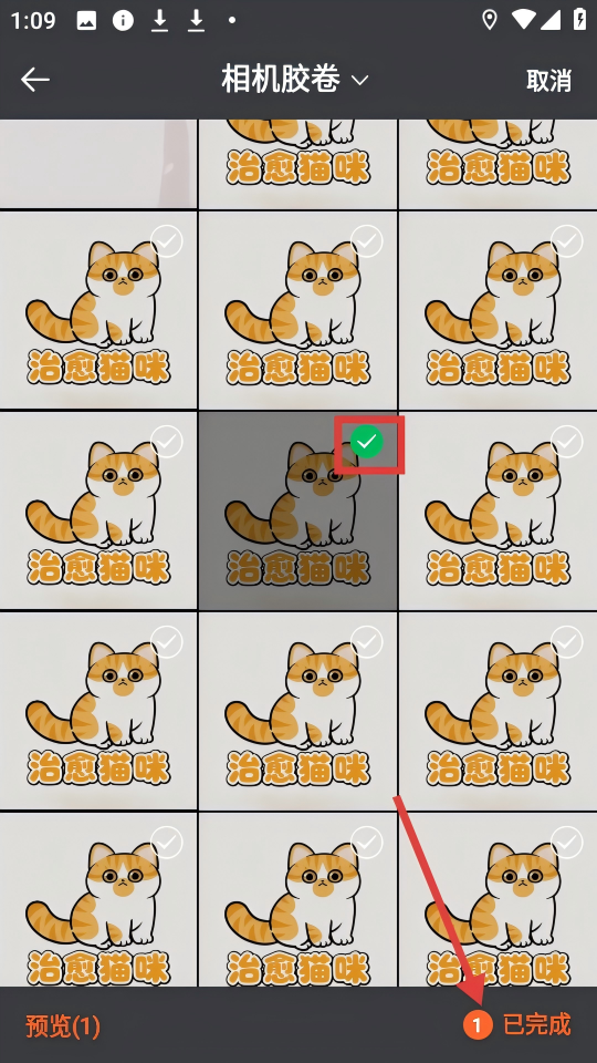 3、在相機膠卷中選擇圖片,點擊右下角【已完成】。