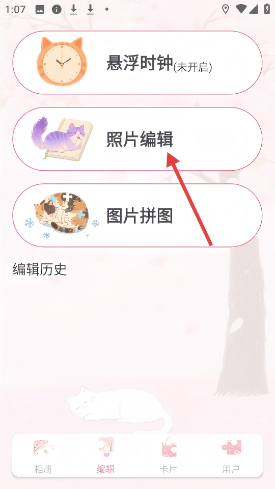 2、在編輯功能頁面,點擊【照片編輯】選項,進入照片編輯界面。