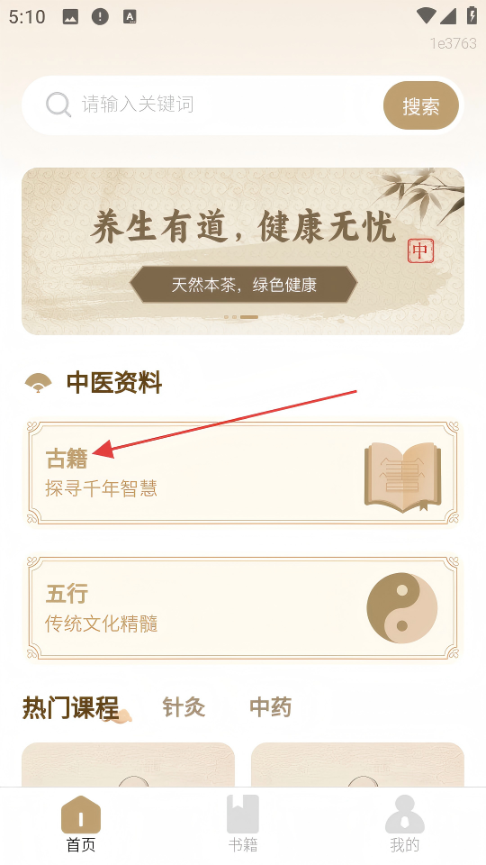 1、在軟件首頁(yè),點(diǎn)擊【古籍】選項(xiàng)進(jìn)入。