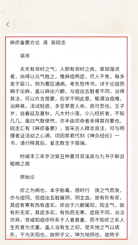4、點(diǎn)擊后,即可查看【麻疹備要方論】的詳細(xì)內(nèi)容。