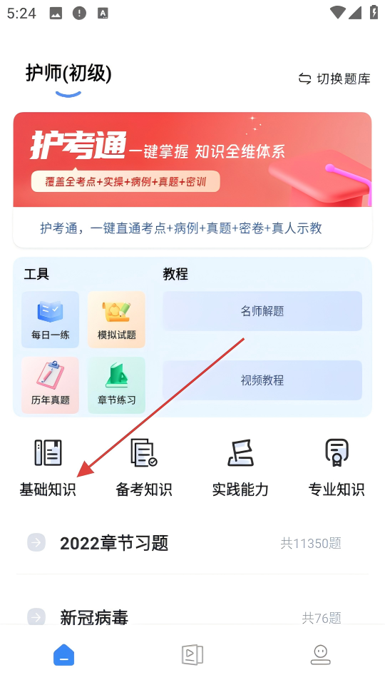 1、在軟件頁面,點(diǎn)擊【基礎(chǔ)知識】,進(jìn)入基礎(chǔ)知識相關(guān)頁面。