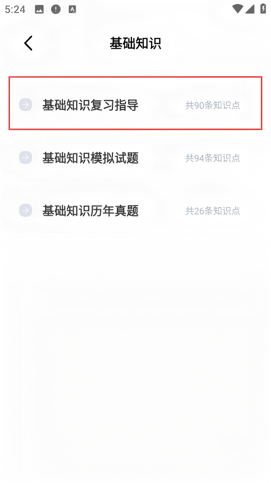2、在基礎(chǔ)知識頁面,點(diǎn)擊【基礎(chǔ)知識復(fù)習(xí)指導(dǎo)】,進(jìn)入復(fù)習(xí)指導(dǎo)列表。