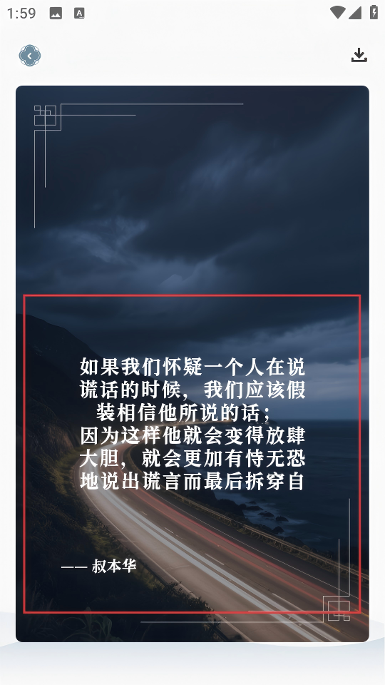 4、進入后,可查看帶有背景圖的名言詳情,也能進行下載。