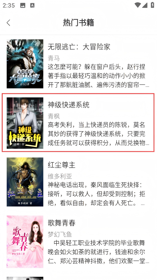 2、在熱門書籍列表里,選擇【神級(jí)快遞系統(tǒng)】。