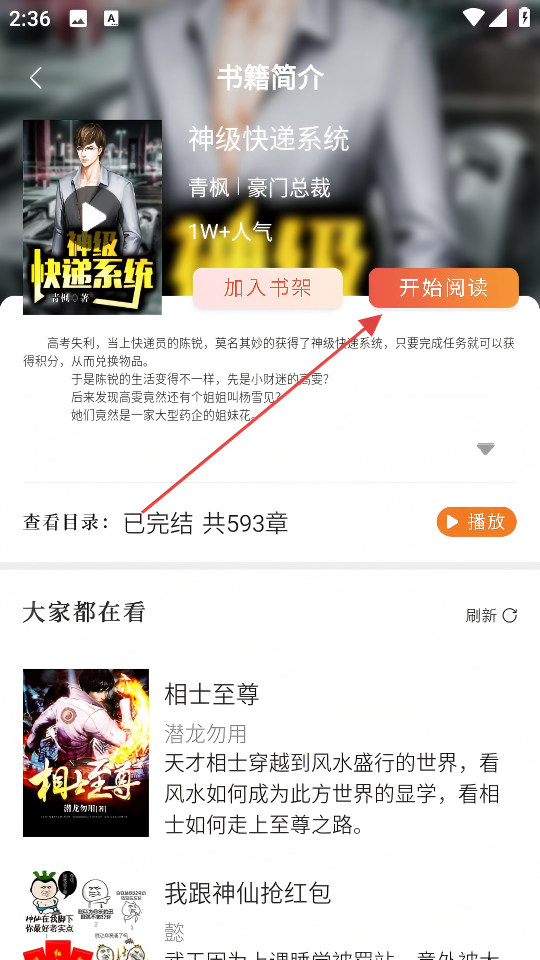 3、進(jìn)入書籍簡(jiǎn)介頁后,點(diǎn)擊【開始閱讀】。
