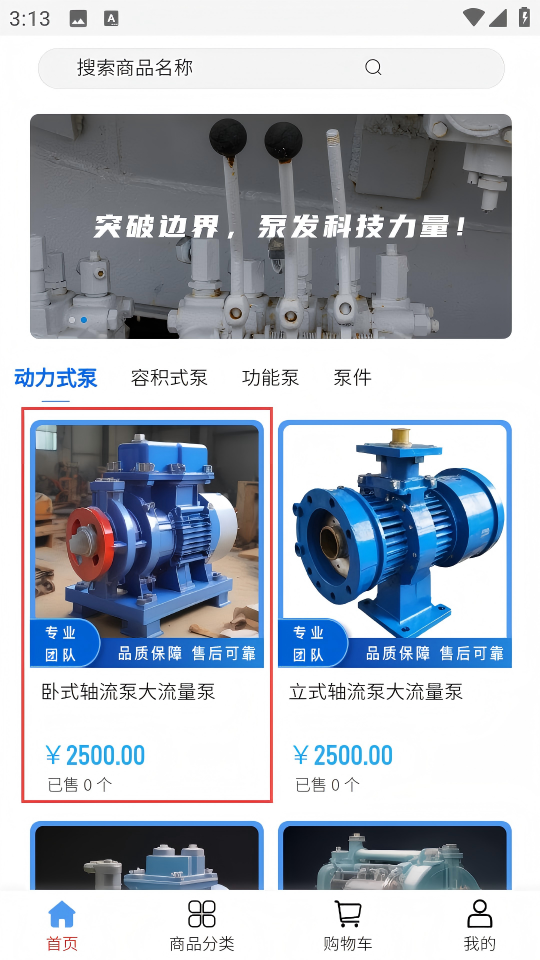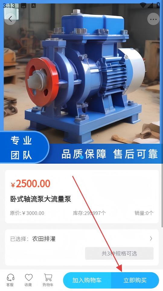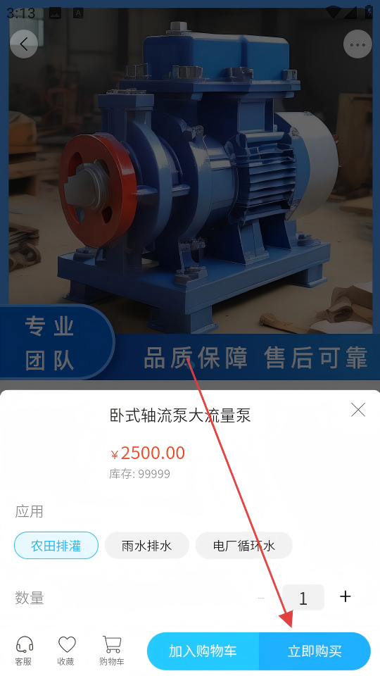 1、在首頁(yè)選擇【臥式軸流泵大流量泵】商品,進(jìn)入商品詳情頁(yè)。