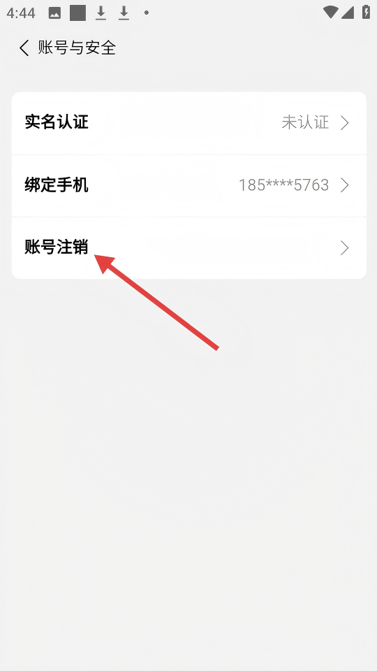 4、在【賬號與安全】頁面,點擊【賬號注銷】,進行賬號注銷操作。