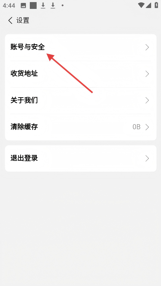 3、在【設置】頁面,點擊【賬號與安全】選項,進入賬號與安全頁面。