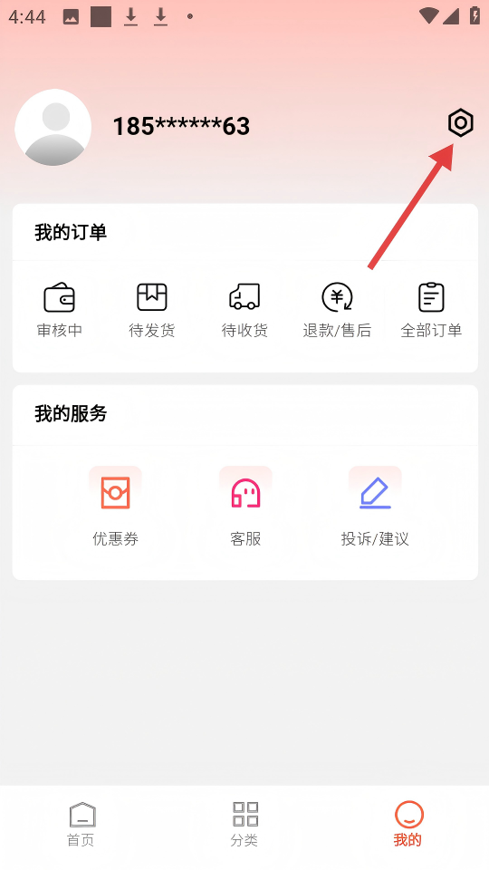 2、在【我的】頁面,點擊右上角設置圖標,進入設置頁面。