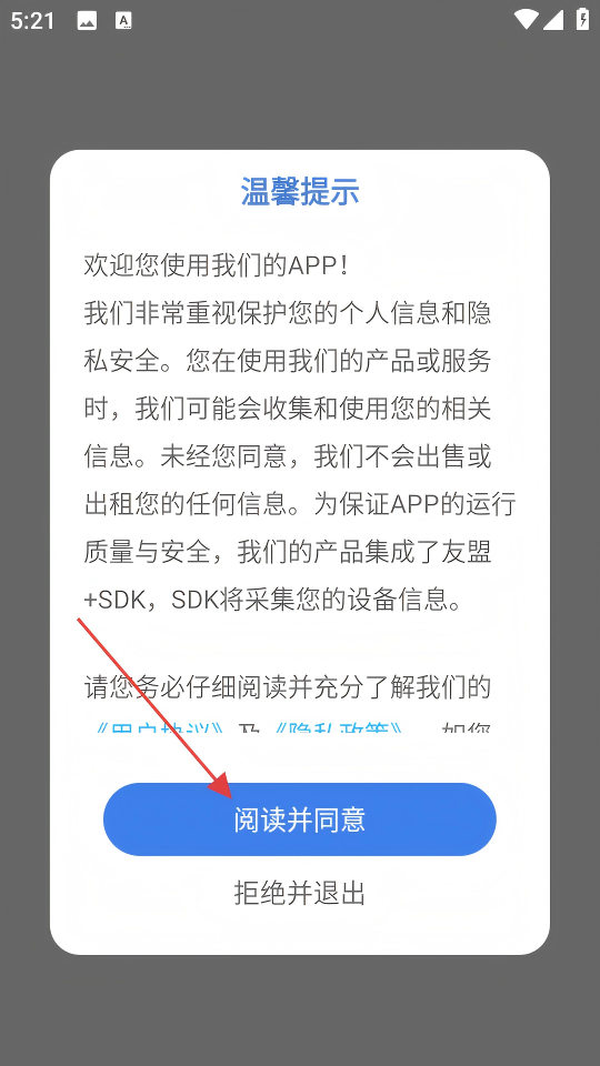 1、點擊【閱讀并同意】,進入應(yīng)用首頁。