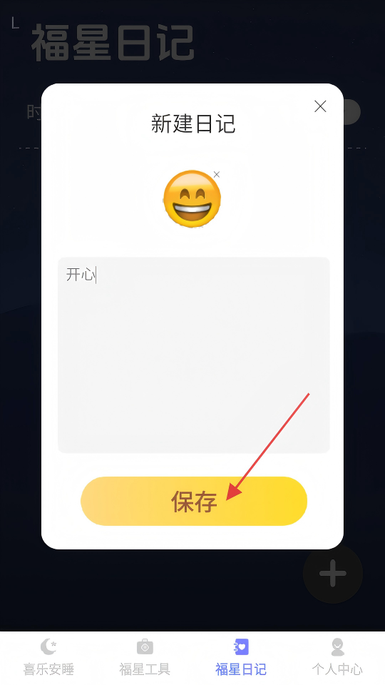 3、在新建日記彈窗中輸入內(nèi)容,然后點(diǎn)擊【保存】。
