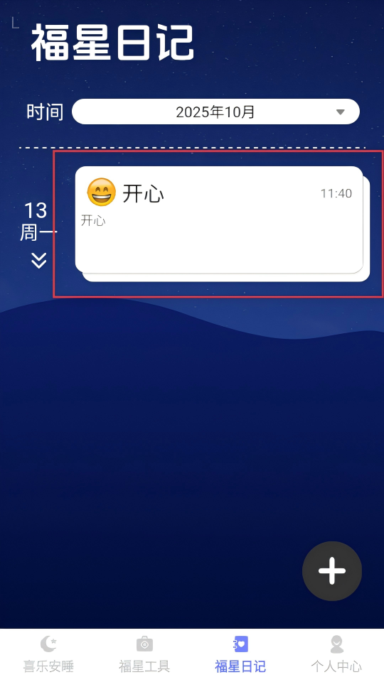 4、保存后,福星日記頁面會顯示剛創(chuàng)建的日記條目。