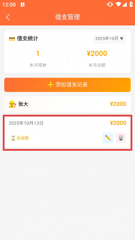 4、保存成功后,借支管理界面會(huì)顯示新增的借支記錄,完成借支記錄添加。