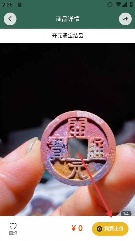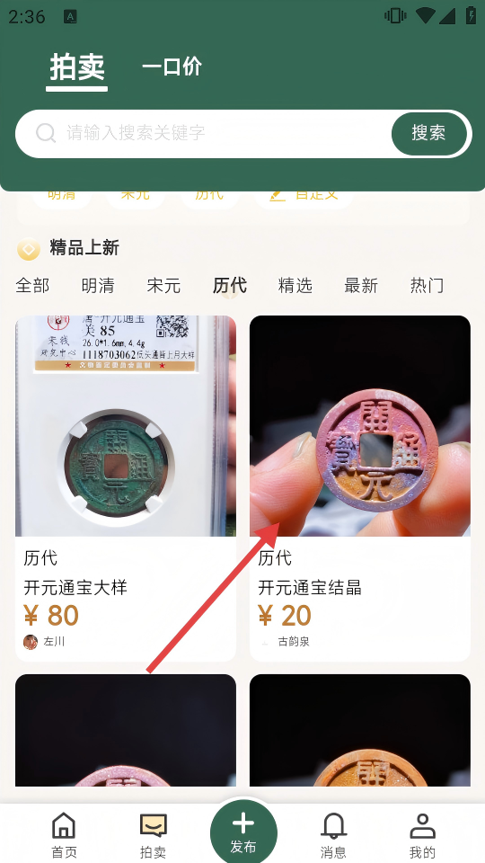 2、在拍賣頁面選擇目標(biāo)古錢幣,點(diǎn)擊進(jìn)入商品詳情頁。