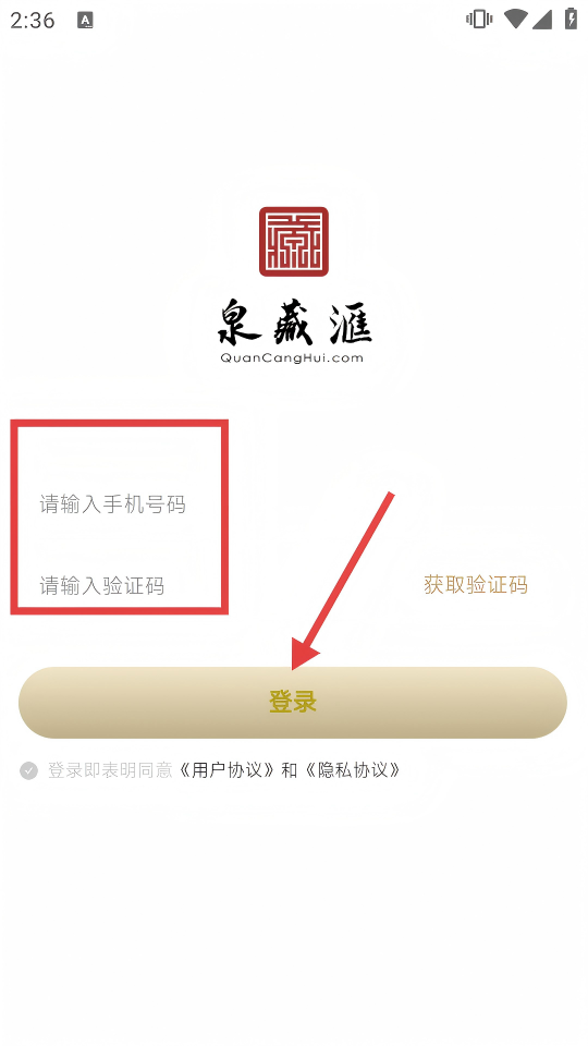 4、在登錄界面輸入手機(jī)號(hào)碼、驗(yàn)證碼,點(diǎn)擊【登錄】,完成登錄后即可參與古錢幣拍賣出價(jià)。