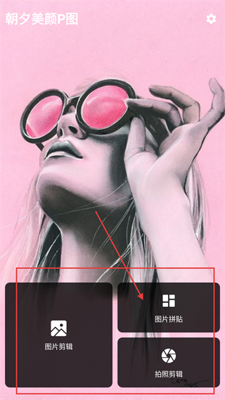 2、在【朝夕美顏P圖】主界面,可看到【圖片剪輯】【圖片拼貼】【拍照剪輯】等功能,選擇所需功能即可開始編輯。
