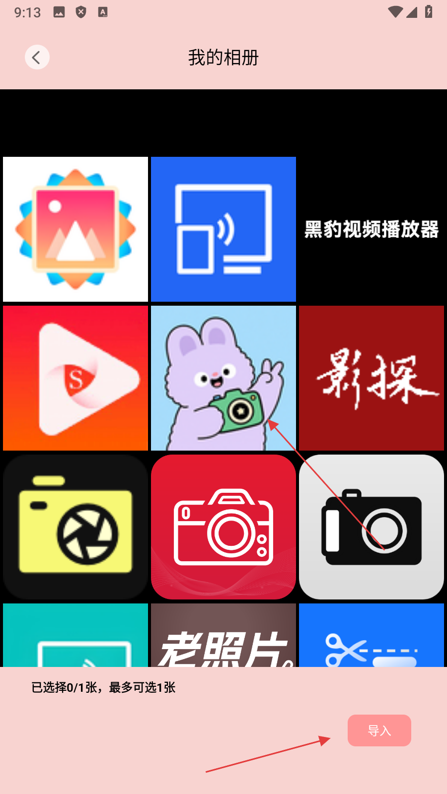 3、在我的相冊頁面,【選擇圖片】后點擊【導(dǎo)入】,進入貼圖編輯頁面。