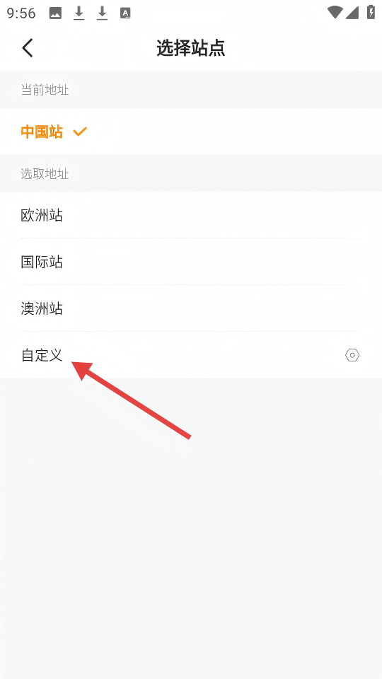 3、在【選擇站點(diǎn)】頁(yè)面中,點(diǎn)擊【自定義】選項(xiàng),可進(jìn)入自定義站點(diǎn)的設(shè)置界面。