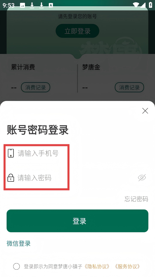 4、在【賬號(hào)密碼登錄】頁面,依次輸入手機(jī)號(hào)和密碼,點(diǎn)擊登錄即可。