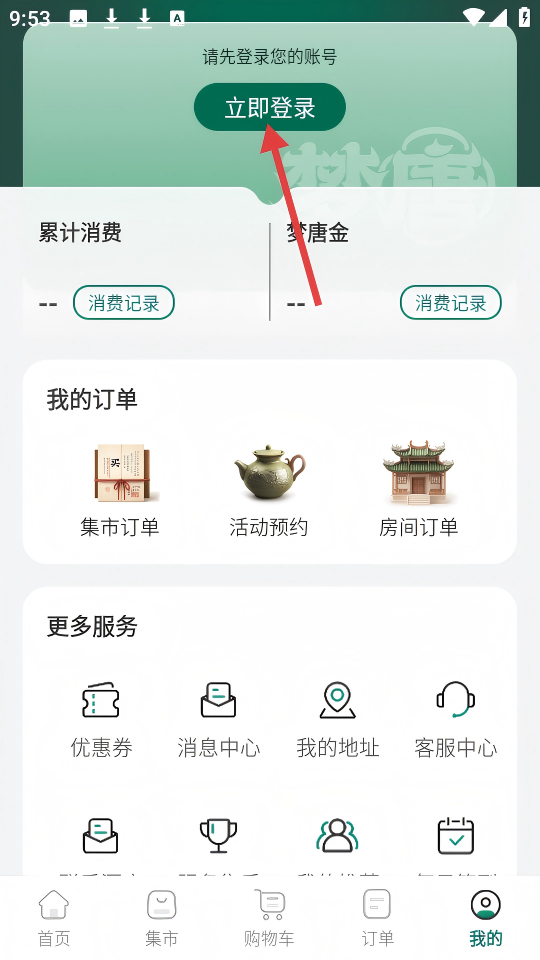 2、在我的頁面,點(diǎn)擊頂部的【立即登錄】按鈕。