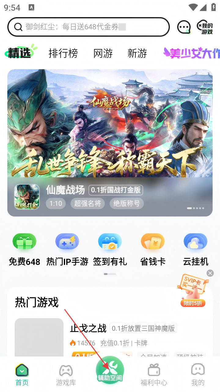 1、在3733游戲盒首頁,若想進(jìn)入輔助空間,點(diǎn)擊底部【輔助空間】,切換到輔助空間頁面。