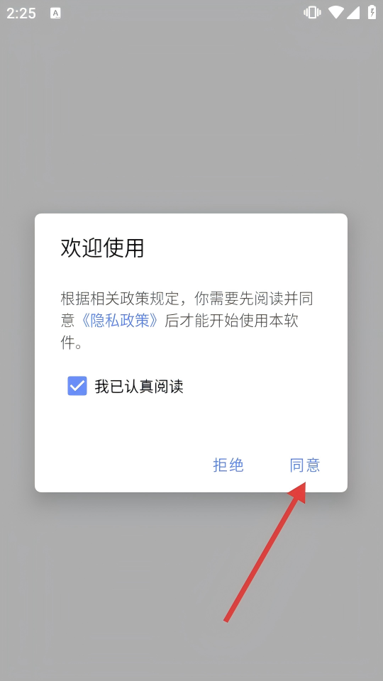 1、使用軟件前,需閱讀并同意【隱私政策】,勾選【我已認(rèn)真閱讀】后點(diǎn)擊【同意】進(jìn)入軟件。