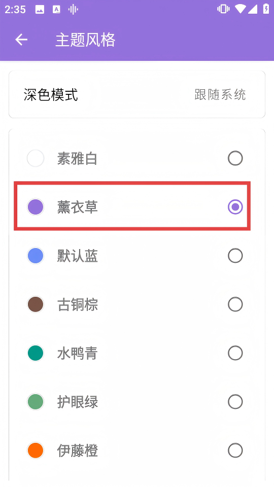 4、進(jìn)入主題風(fēng)格界面,可選擇【薰衣草】等主題風(fēng)格,更改軟件界面的視覺風(fēng)格。