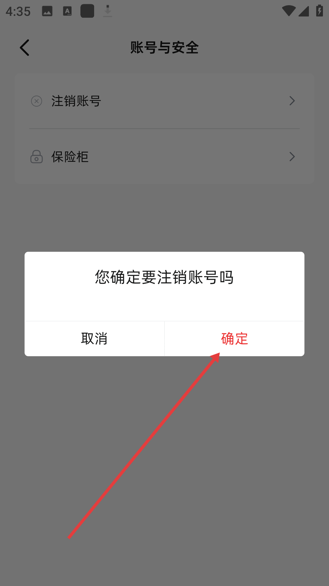 3、在賬號與安全頁面點擊【注銷賬號】,彈出確認(rèn)注銷賬號的提示框。