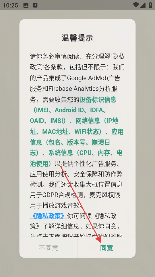 1、閱讀【溫馨提示】中的隱私政策后點(diǎn)擊【同意】,進(jìn)入APP主界面。