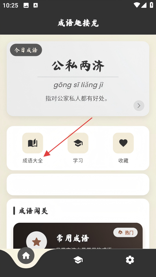 2、在主界面點(diǎn)擊【成語大全】,進(jìn)入成語大全頁面,可查看各類成語列表。
