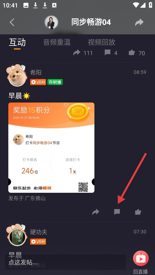 2、在互動(dòng)頁面點(diǎn)擊評(píng)論圖標(biāo),可進(jìn)行評(píng)論操作。