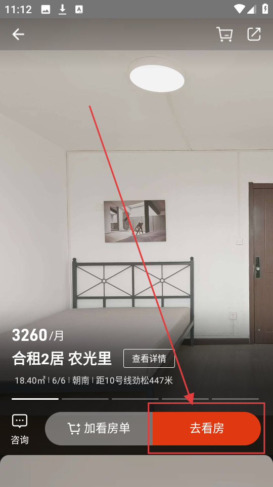 2、進(jìn)入房源頁(yè)后,點(diǎn)擊【去看房】,就能選擇看房方式,超方便的喲。