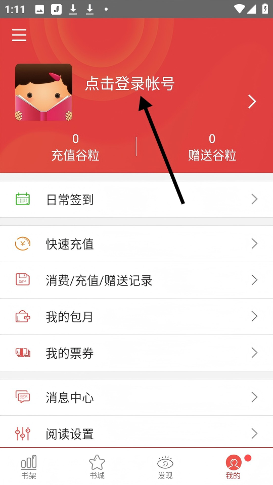 1、在書架界面點擊右下角【我的】可進(jìn)入個人中心頁面。