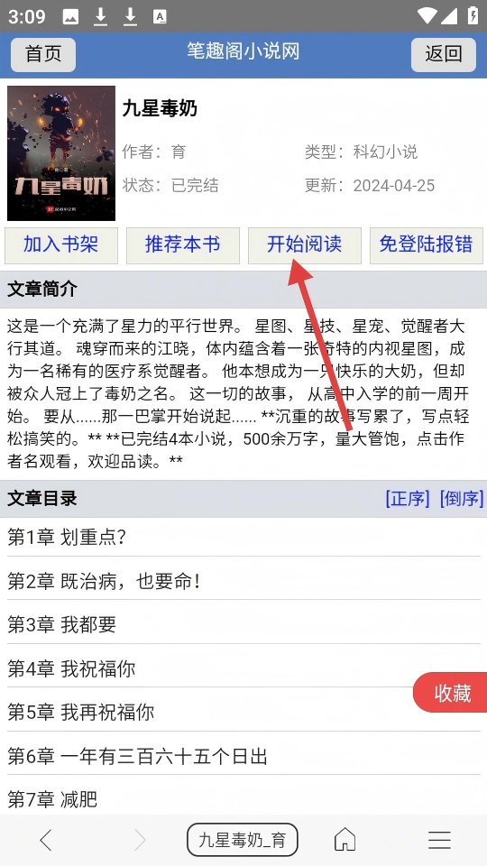 4、在書籍詳情頁,點擊【開始閱讀】,即可開始閱讀小說。