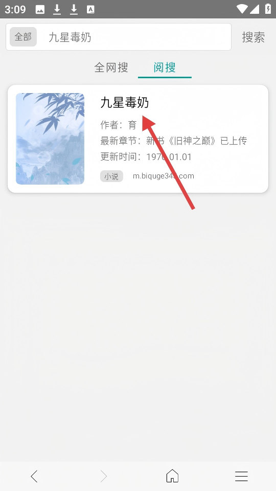 3、在搜索結(jié)果頁,點擊【九星毒奶】,進入書籍詳情頁。