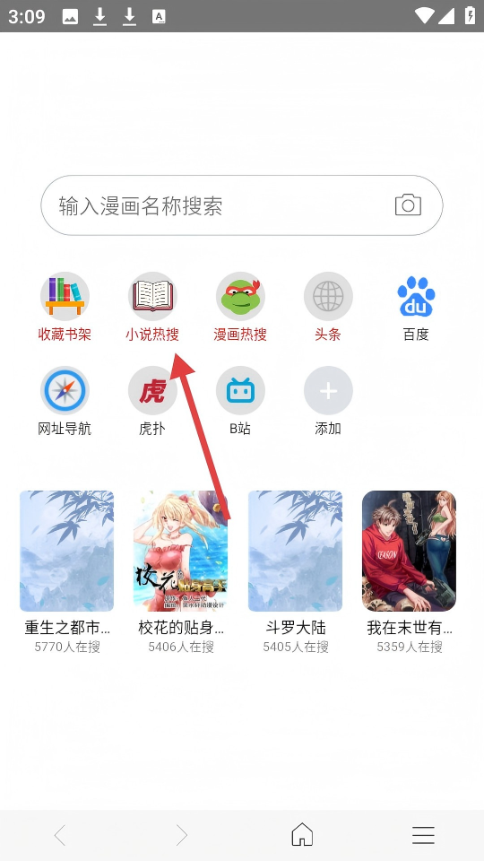 1、點擊界面中的【小說熱搜】,進入小說熱搜頁面。