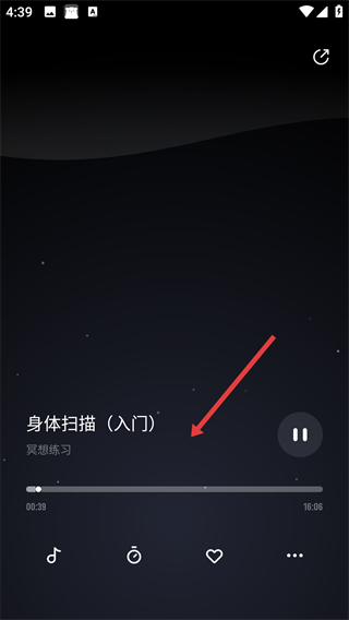 4、進入練習(xí)后,即可開始【身體掃描(入門)】的冥想練習(xí),可根據(jù)界面控制播放進度。